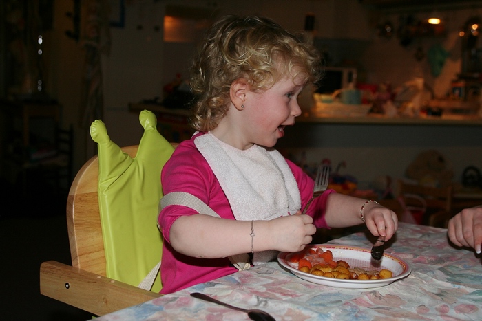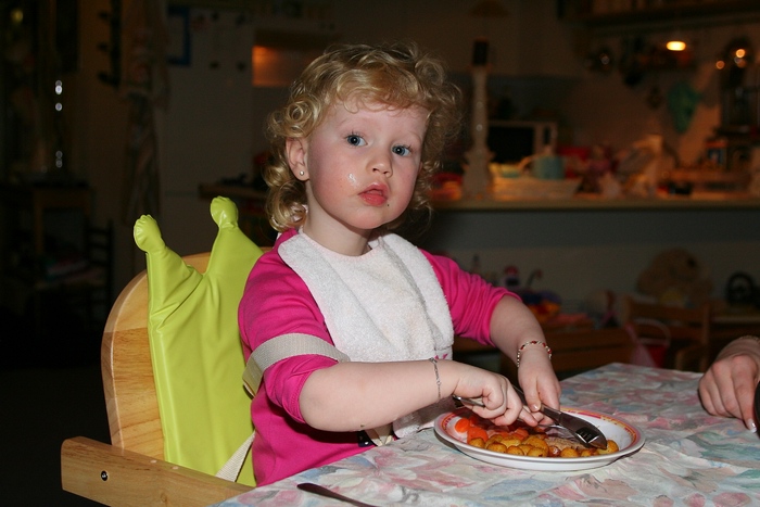 - Nancy eet voor het eerst met mes en vork