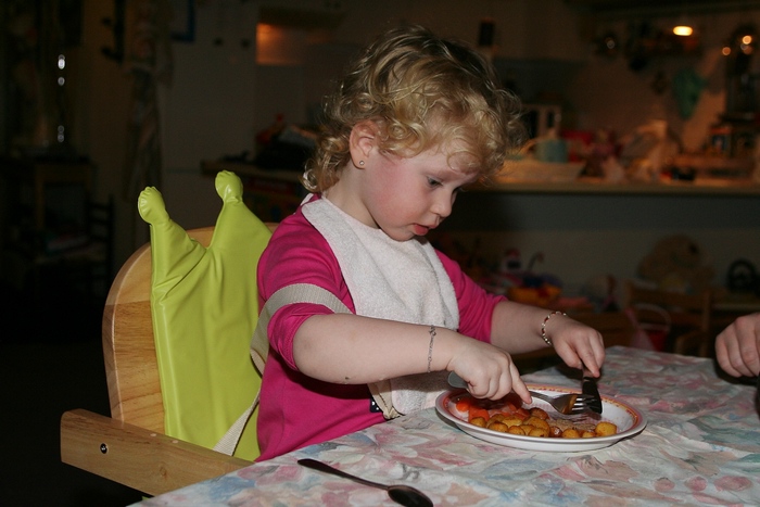 - Nancy eet voor het eerst met mes en vork